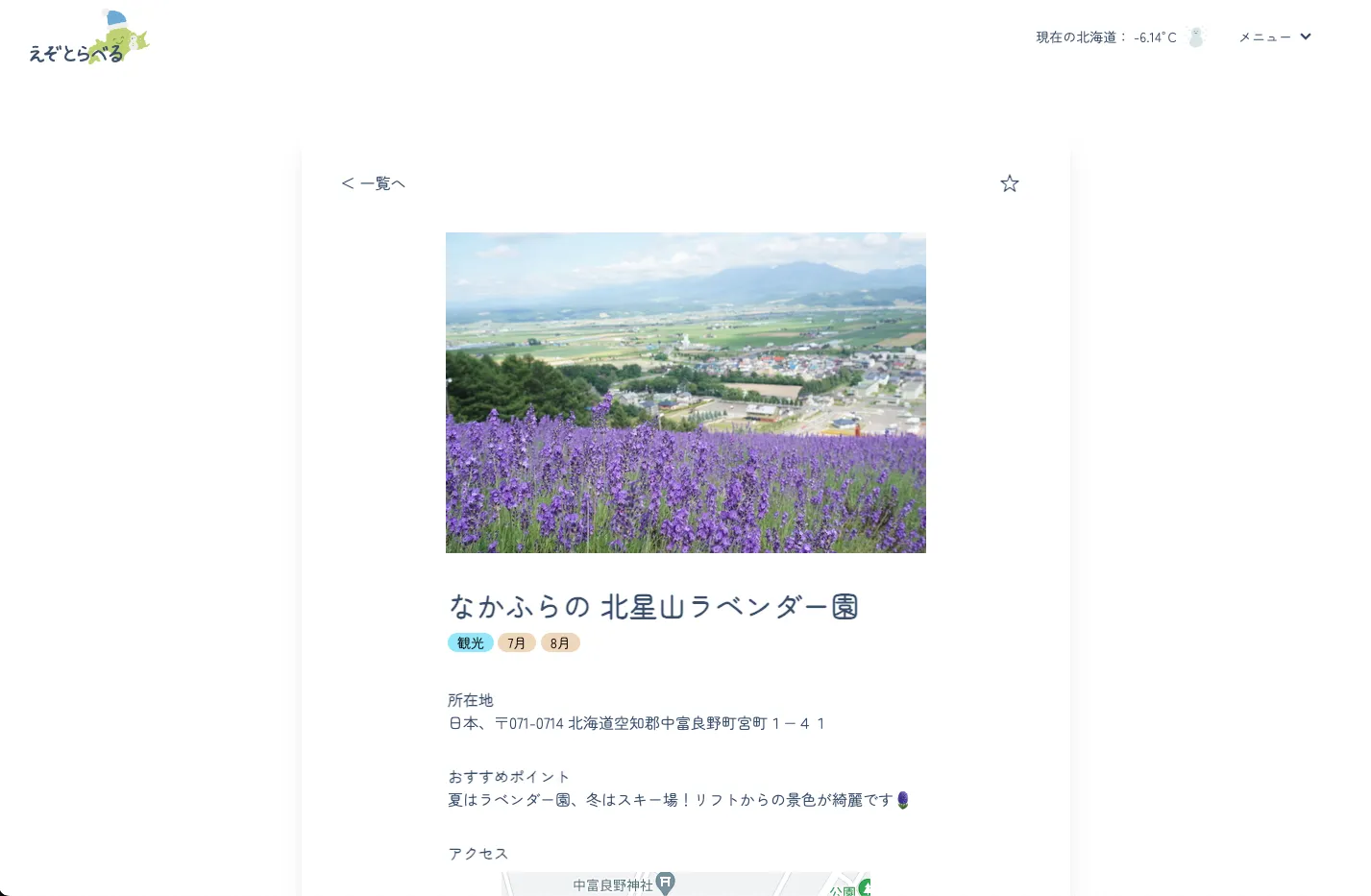 ベストシーズンや、アクセス、移動時間、合わせて行ける近くのスポットなど、詳しい情報を見てみよう