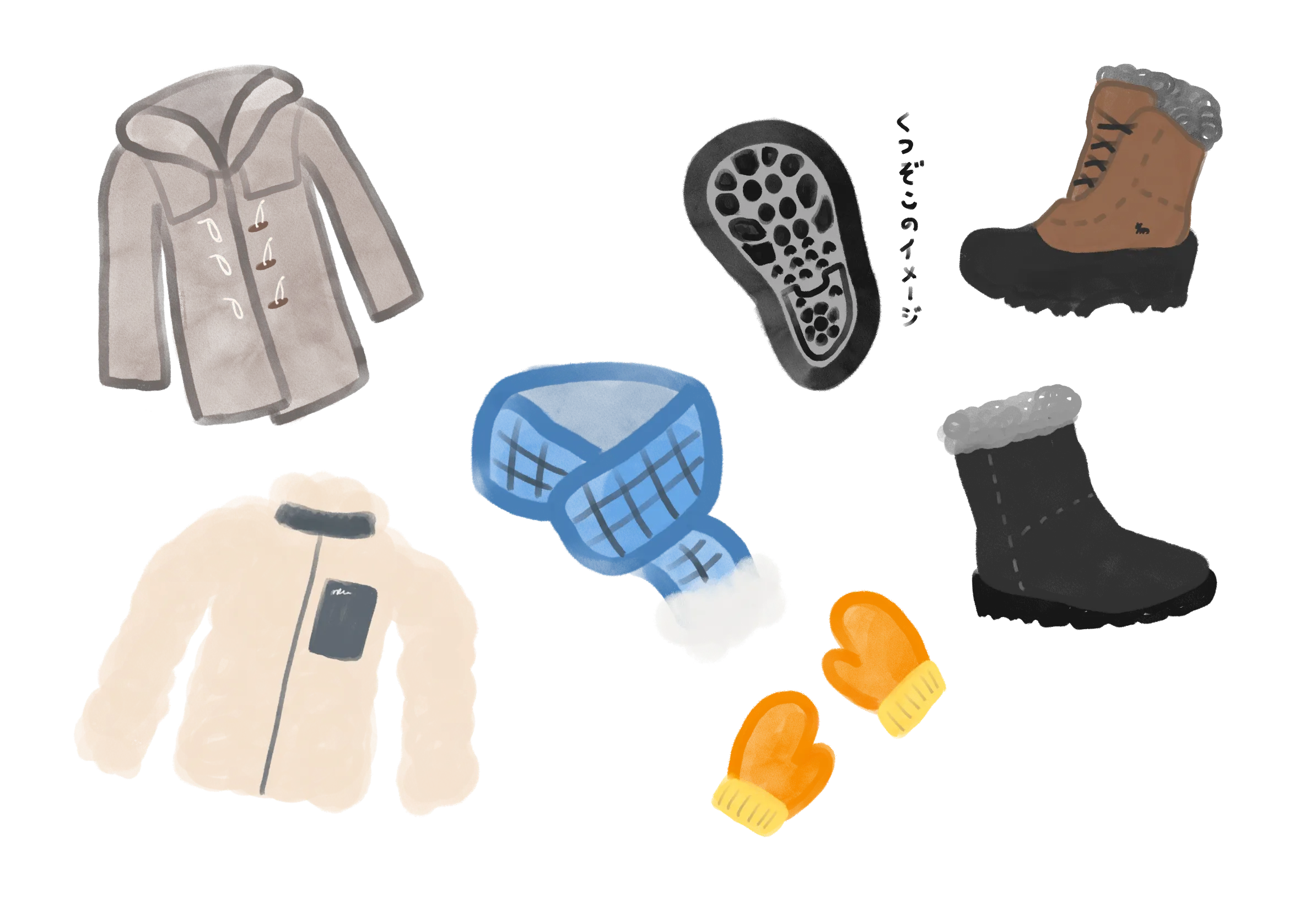 くつ :靴底のしっかりした滑りにくい冬靴