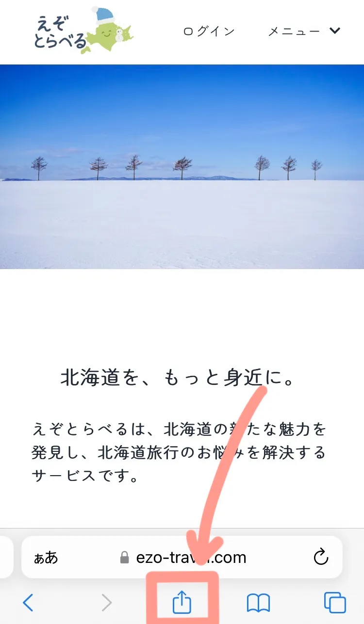 Safariでえぞとらべるを開き、「共有ボタン」を押します。