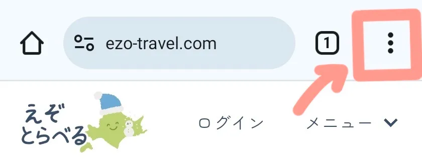 Chromeでえぞとらべるを開き、図の矢印で示されたボタンを押します。